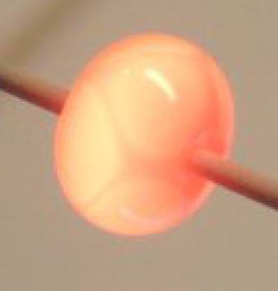 Die Perle weiterhin von rundherum erhitzen, bis alle Dots glatt eingeschmolzen sind.Hat man alles richtig gemacht, sollte die Perle nun schöne regelmäßige Dreiecke mit leicht gerundeten Ecken haben.